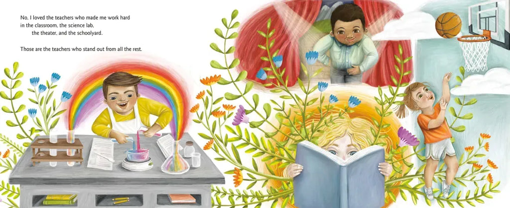 Children will love seeing themselves and their favorite teachers in scenes bursting with positivity, highlighting not just academics but sports, drama, art, music, and community. And teachers will appreciate seeing their honored profession depicted with love and gratitude.