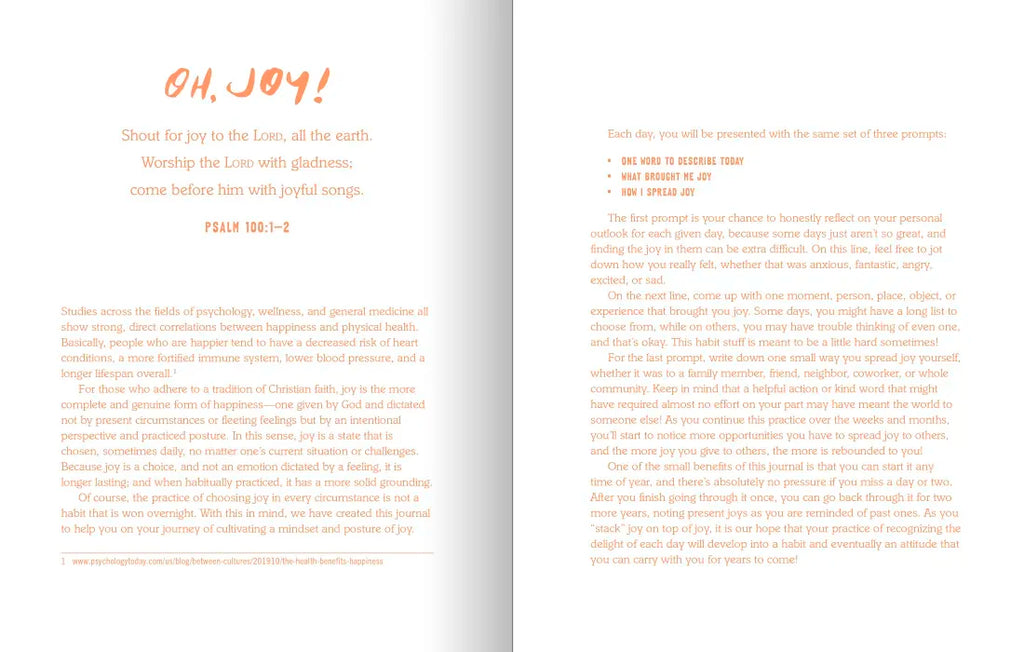 With this in mind, allow The 3-Minute Journal of Joy to be your guide as you record moments of blessing and cultivate an overall posture of joy.