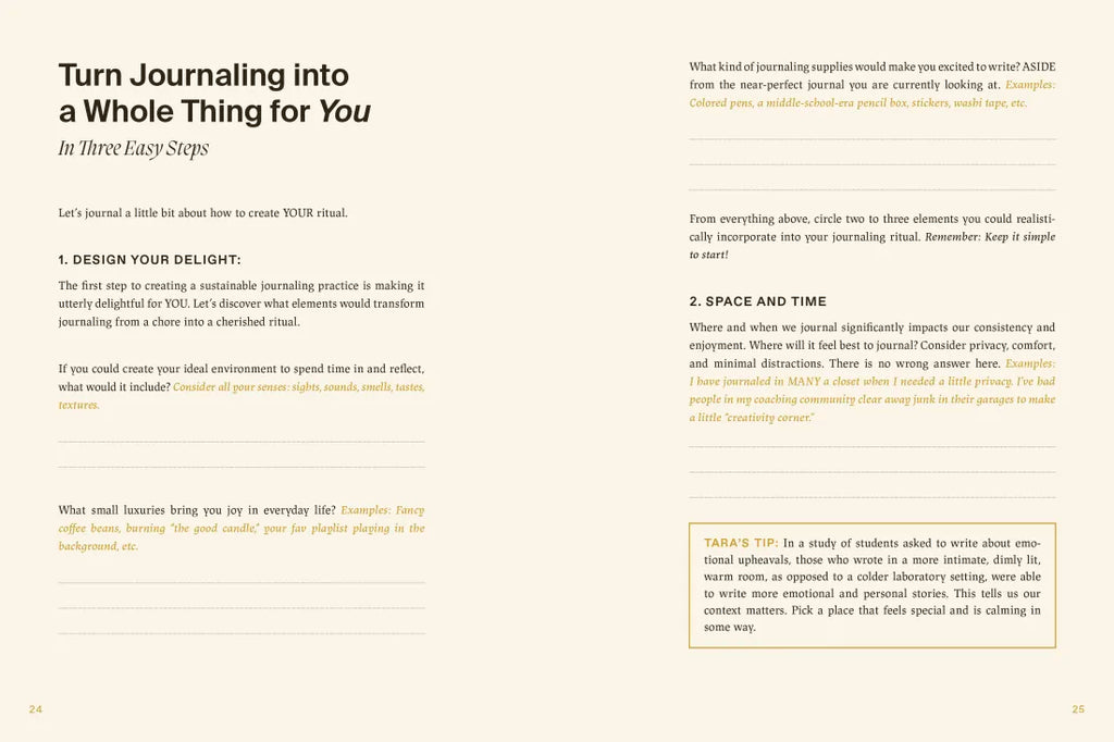 As someone who strongly resisted the idea of writing down her thoughts (ew, how cheesy), Tara knows firsthand that getting started is hard, but keeping it going can be just as tough. Her anti-corny-but-still-not-boring advice will help you learn how to overcome those doubts (yes, you do have time, even though you CANNOT give up watching The Real Housewives) and create a ritual around journaling (the magic that keeps your practice going). Along with the science and ritual, This Journal Actually Works teaches the art of different writing methods so you can figure out what really works for you, whether that's Morning Pages, Gratitude, Expressive Writing, or something else.