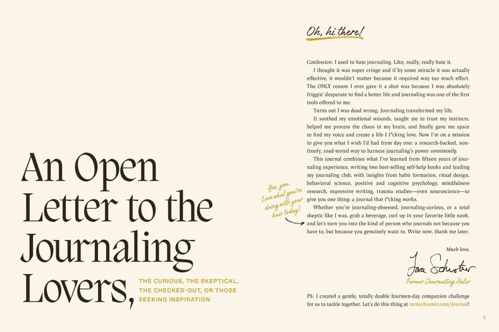 This Journal F*cking Works is the ultimate guide for anyone who wants to journal but doesn't know where to start. Author Tara Schuster offers a candid, funny, and deeply relatable guide to the whys, hows, and what nows of journaling.