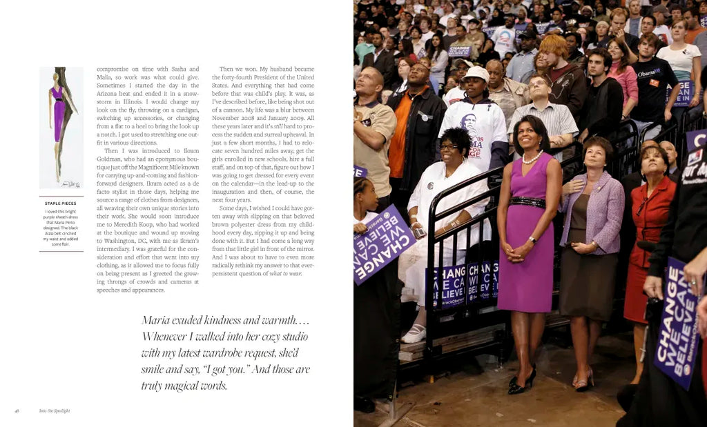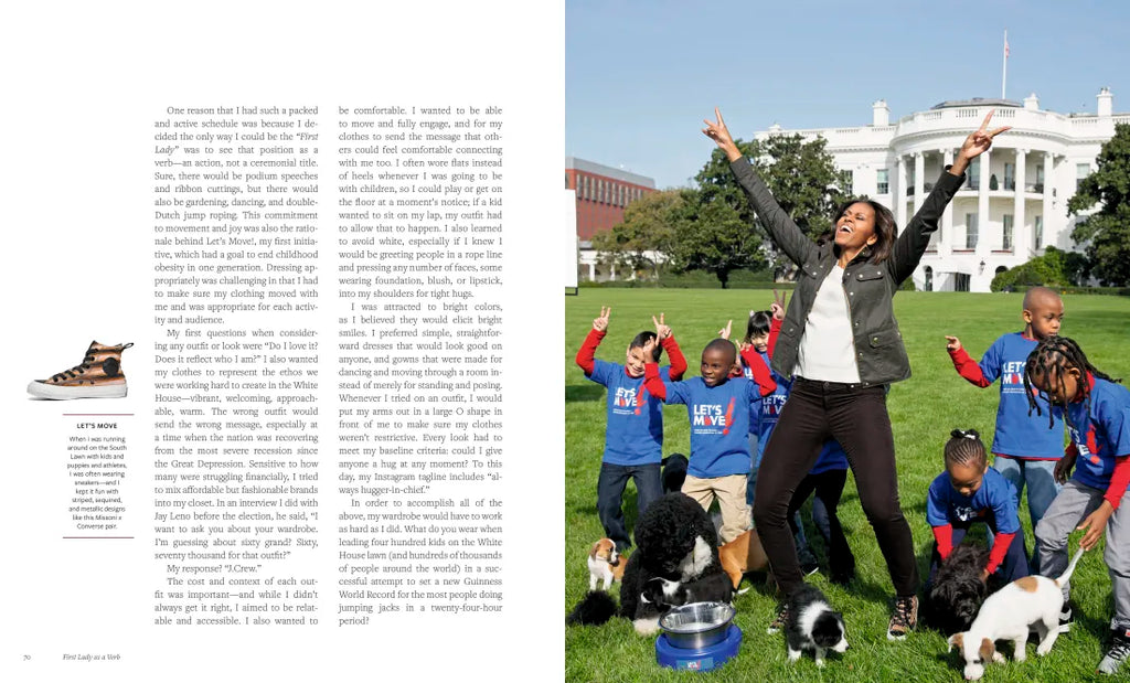 Obama’s intimate and candid stories illuminate how her approach to dressing has evolved throughout her life—from the colorful sheath dresses, cardigans, and brooches she wore during her time as First Lady to the bold suits, denim, and braids of her post-White House life and all the active looks and beautiful gowns in between.