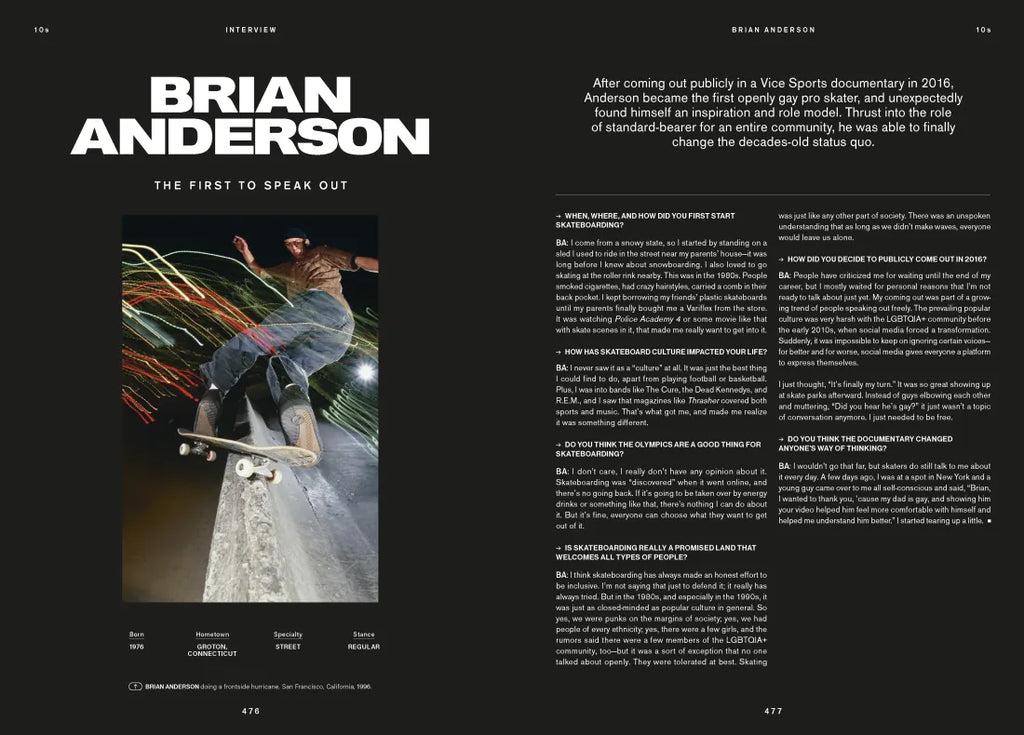 A celebration of skateboard culture from the 1970s to today, featuring interviews with legendary skaters including Tony Hawk and Mark Gonzales, a foreword by director Spike Jonze, and over 400 rare photographs and images