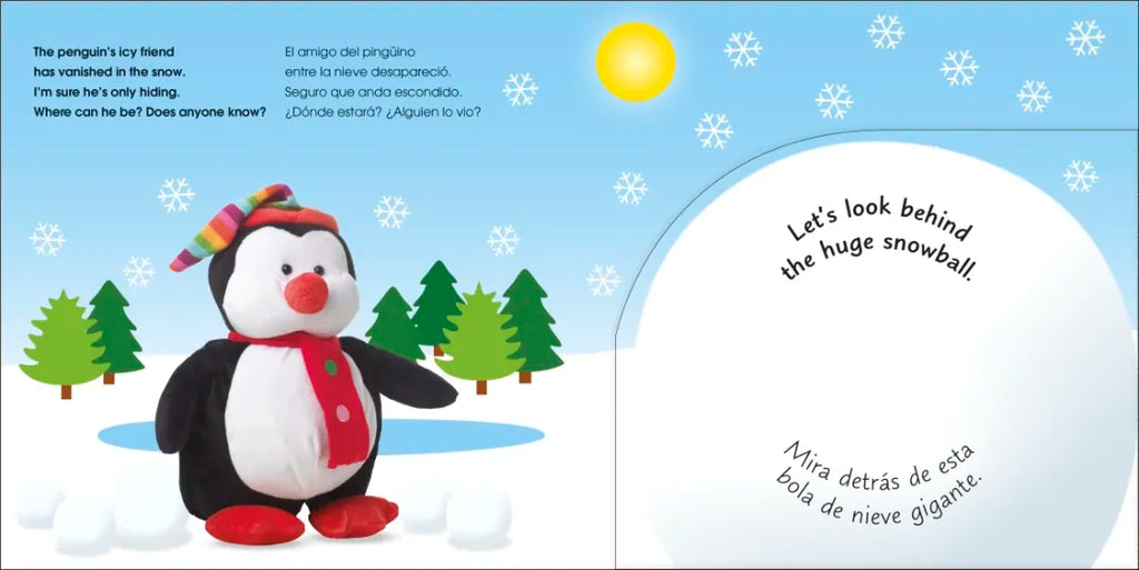 Come join a magical hide-and-seek Christmas! Search the snow and Christmas trees to see if you can find Penguin and his friends hiding under the flaps of this bilingual book.