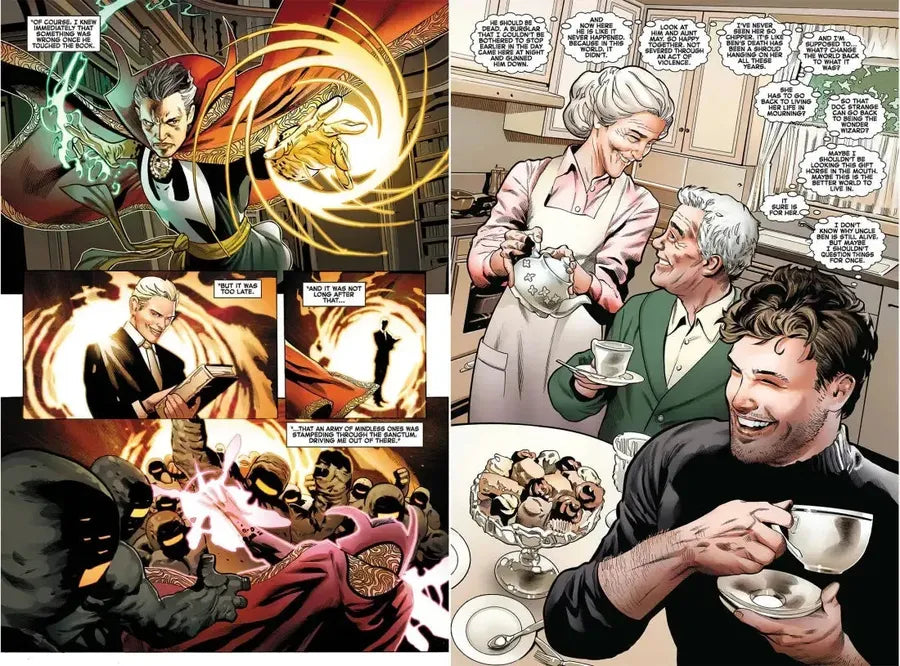 Everyone knows the infamous living costume Spider-Man accidentally brought back from the Secret Wars eventually became the wicked web-slinger known as Venom — but what happened before Peter Parker discovered its sinister symbiotic secret? A lot! When his girlfriend, the Black Cat, is the victim of blackmail, the darker-than-ever wall-crawler takes on that most mystifying of menaces: Mysterio! Then the Hobgoblin strikes, deadlier than ever! But where did Hobby get these uncanny new powers? Hopefully Doctor Strange can answer that question — because reality itself depends on it! Spidey joins the Black Knight and Kang the Conqueror in a time-torn tussle with Knull, the King in Black! And another mind-bending trip puts him on a collision course with the Hulk! Plus: Peter David returns to 2099 to bond Miguel O’Hara with his own symbiote! And once there was another host that almost everybody forgot — but Carnage remembers!
