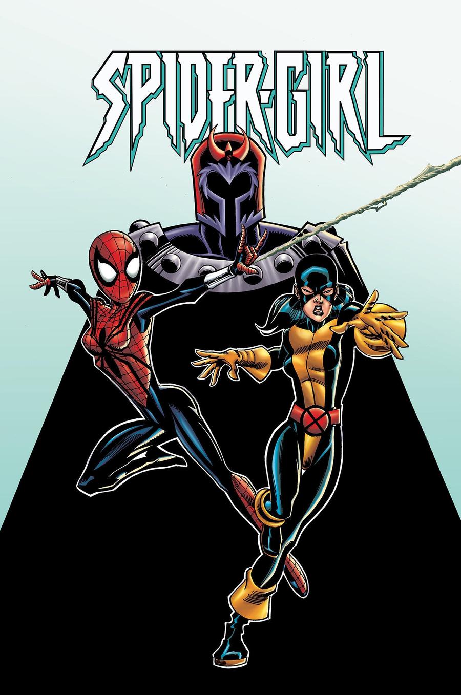 When an old enemy returns to destroy the Fantastic Five, Spider-Girl must join the children of the original FF on the last line of defense as the truth behind what happened to Sue Richards is revealed! Normie Osborn confronts Phil Urich, because the time has come for a new Green Goblin — but what are their plans to exploit the Venom Symbiote? And thanks to the man called Kaine, Spider-Girl has seen the future — and knows that she is destined to die at the hands of a Scrier! Will Felicity Hardy’s unexpected return as the Scarlet Spider help save Spider-Girl? Or will it doom her? And when the original Hobgoblin returns, Mayday goes back in black — and Spider-Man joins Spider-Girl for one last super-battle!