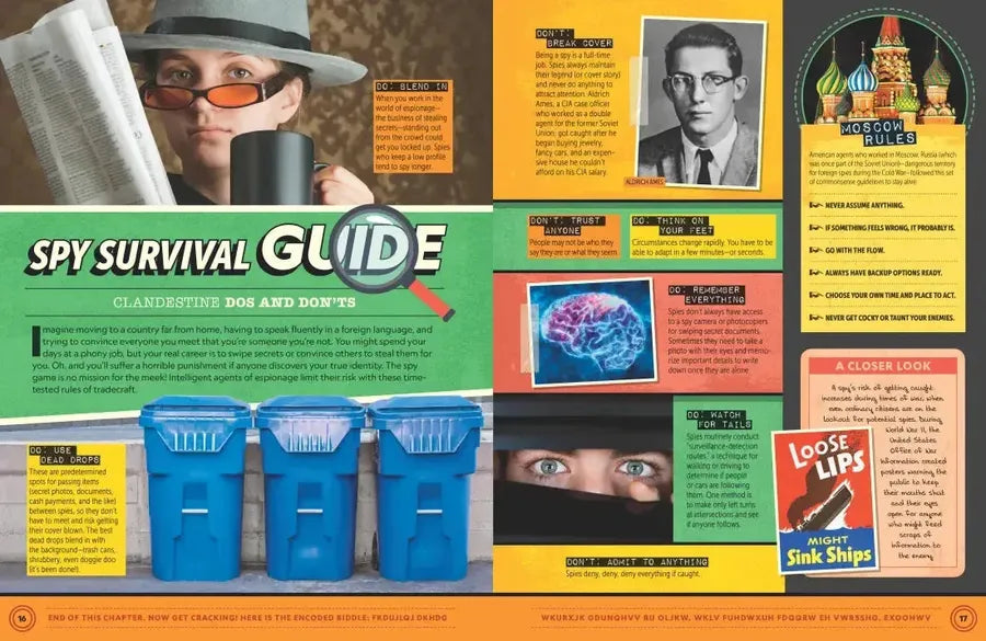 From the world's most elite spy agencies to the coolest spy gadgets of today and the most spine-tingling conspiracies and covert cover-ups ever, this book is jam-packed with everything that's allowed to be revealed. You'll get to take a crack at codes that leave even the world's most elite code breakers totally stumped, get behind-the-scenes access to how movie magic really happens, take a sneak peek at the world's most covert recipes, unravel the tricks magicians use to astonish their audiences, and get up close with the world's most mysterious places. With tongue-in-cheek "How to Be a Spy" activities, you and your friends will get to put your budding spy skills to the test. And when you're all done ... don't forget to wipe this book for prints and store it safely with your secret stash. After all, you don't want it falling into the wrong hands!