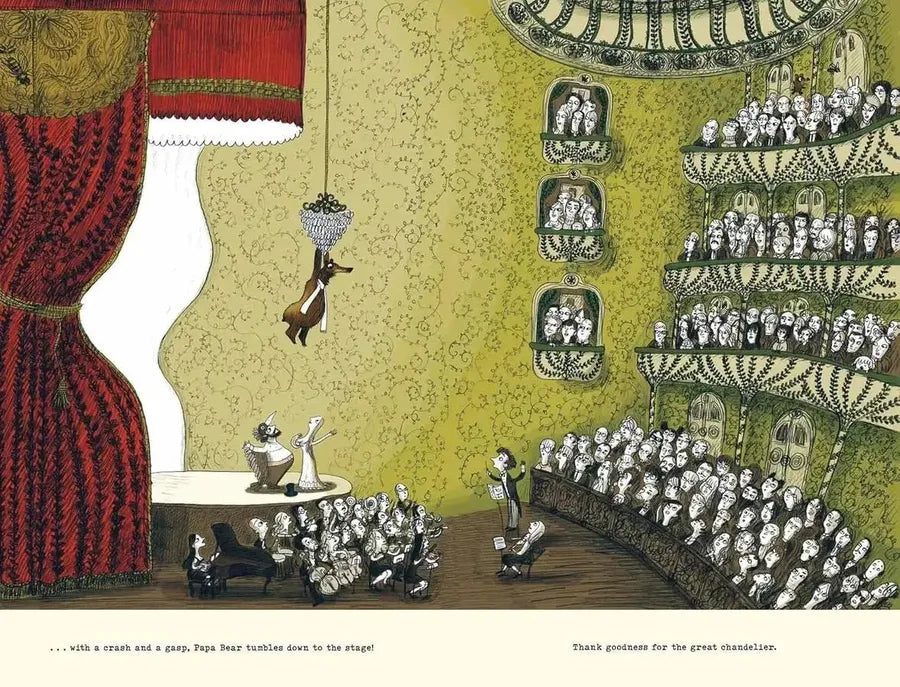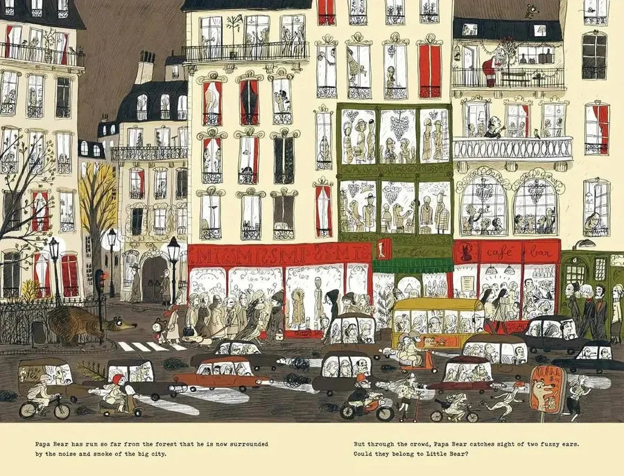 "Sweet" has new meaning in this richly illustrated, immersive picture book about two bears on a big-city adventure. Papa Bear is searching for Little Bear, who has escaped the den. Little Bear is following a bee, because where there are bees, there is honey! When the quest leads both bears into the bustling city and a humming opera house, theatrical hijinks ensue, culminating in a deliciously harmonious reunion. Children and parents alike will savor Benjamin Chaud's lush illustrations, and relish in the book's bonus seek-and-find elements.