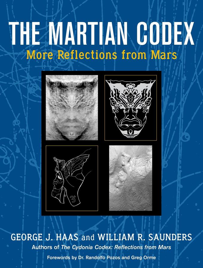 In this provocative book, The Cydonia Codex authors George J. Haas and William R. Saunders use archaeological research discoveries and photographs from NASA and other space programs to document the uncanny similarities between Martian and now-extinct Earth cultures. The Martian Codex begins with a review of the thirty-year history of documenting the famous “Face on Mars” landform from NASA’s first photographs in 1976 to the Mars Reconnaissance Orbiter’s HiRISE shots in 2007. Detailed analysis shows it as a split-faced structure that precisely resembles a set of masks from a temple in Cerros, Mexico.
