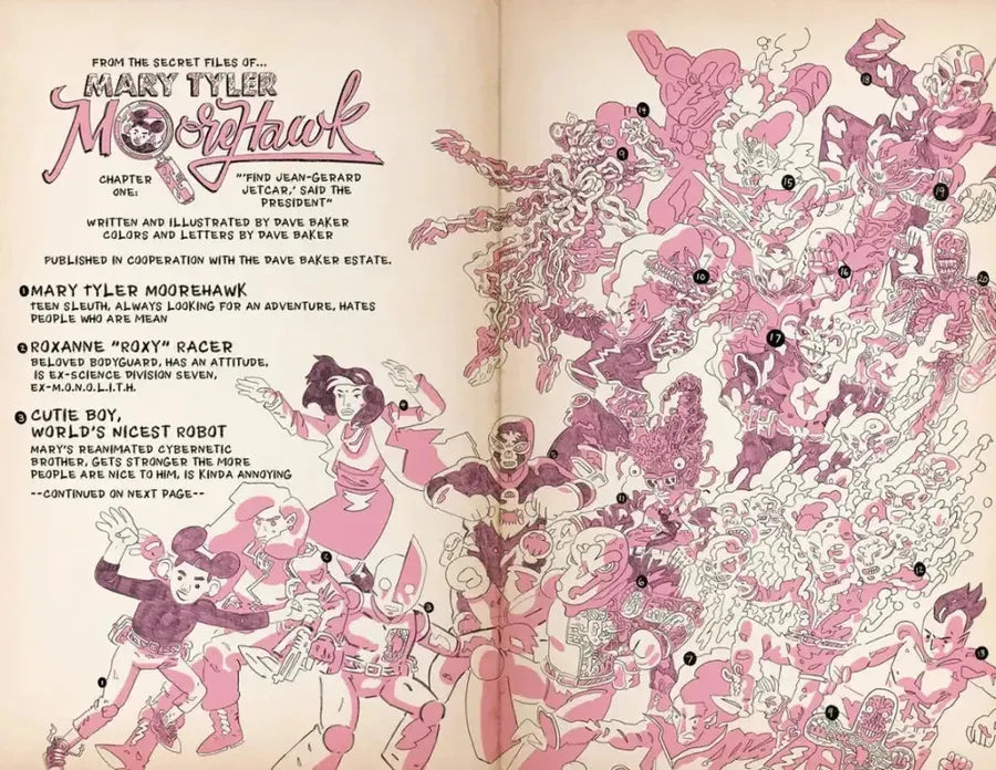 WHO IS MARY TYLER MOOREHAWK? How did she save the world from a dimension-hopping megalomaniac? Why was her TV show canceled after only nine episodes? These are just a few of the questions that young journalist Dave Baker begins to ask himself as he unravels the many mysteries surrounding the obscure comic book Mary Tyler MooreHawk. However, his curiosity grows into an obsession when he discovers that the reclusive creator of his favorite globe-trotting girl detective…is also named Dave Baker.