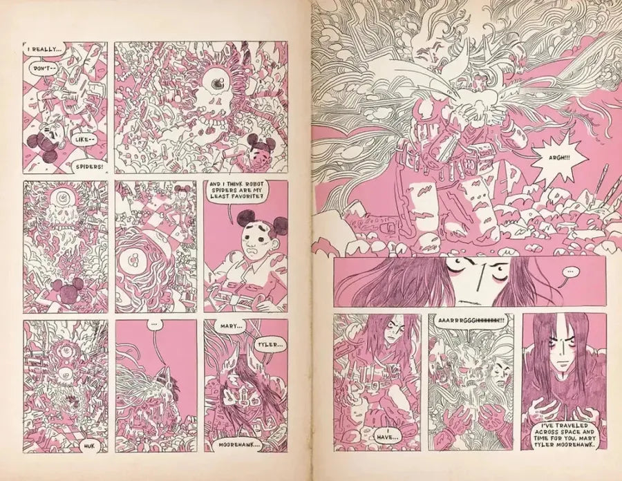 WHAT IS MARY TYLER MOOREHAWK? A compilation of long-lost gee-whiz adventure comics in which the world’s strangest family fights to avert Armageddon…and a bundle of magazine articles from a dystopian future where physical property is banned and entertainment is broadcast on dishwashers. It’s a document-based detective story that weaves back and forth between worlds, touching on everything from corporate personhood to mutant shark-men to the meaning of fandom and reality itself. It’s a show you don’t remember…and a book you won’t forget.