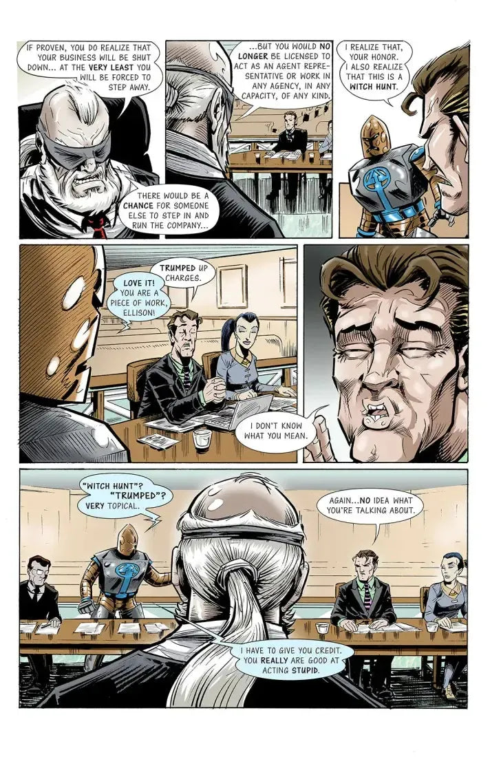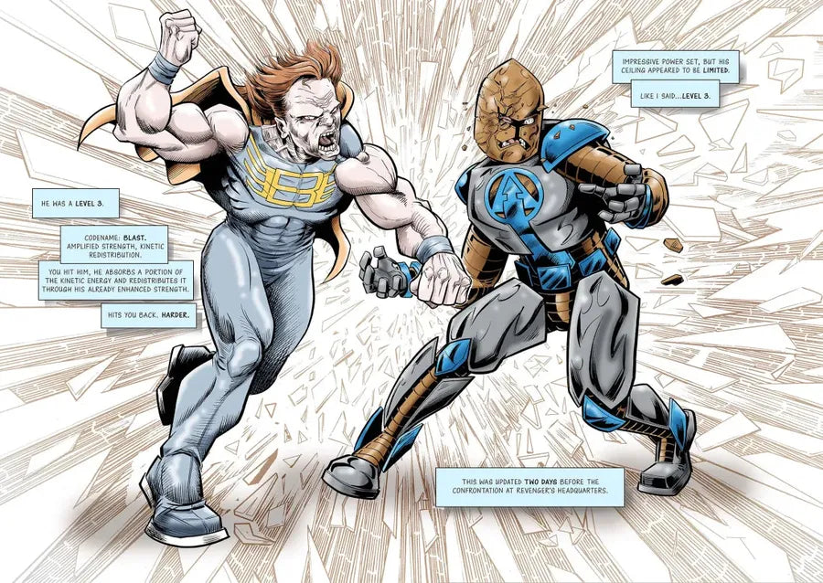 The F.A.R.M. System’s founder, Alexander Ellison, is under heavy attack…from the hero Armor Man and his team of high-priced attorneys! They’re accusing him of illegally enhancing his clients with a controversial designer drug called the Boost—a “super-steroid” that can amplify superhuman abilities to truly unimaginable levels. While Alex faces the fight of his life in the courtroom, the court of public opinion will decide whether one of Alex’s most promising recruits will become…the next president of the United States.