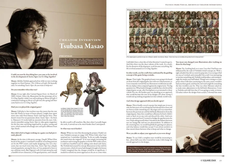 Celebrating the creative vision behind a classic of the strategy game genre, this deluxe hardcover volume presents character designs and rough sketches, tarot card designs, background art, pixel art, illustrations exclusive to this book, and more. The Art of Tactics Ogre also offers artist commentary and interviews with character designers Akihiko Yoshida and Tsubasa Masao. A collectors-quality book printed on heavy art stock, it features a five-color preprinted case, frosted PVC jacket with gold foil stamping, and dyed endpapers.