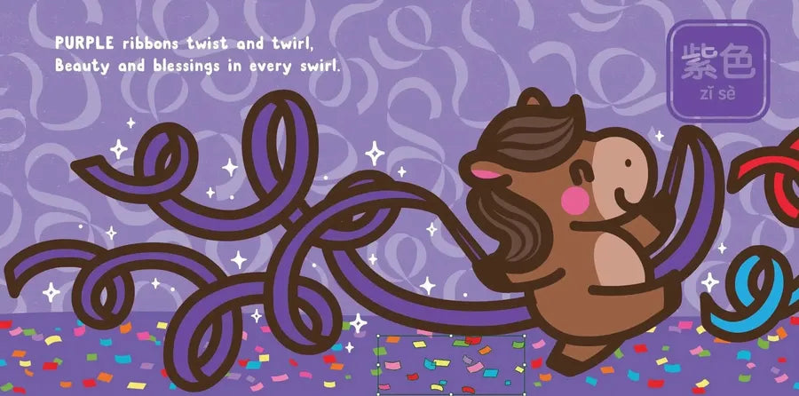 From the RED of lucky envelopes and the ORANGE of tangerines to lovely PINK plum blossoms, LUCKY NEW YEAR COLORS captivates young readers with Wan’s signature cute-as-a-button style, a rainbow of colors, and an authentic cultural experience. Kids will step into a colorful journey through the widely celebrated holiday known as Chinese New Year as Wan brings her Chinese heritage to life through all the colors of the rainbow and playful rhymes. This book shares a wonderful combination—the concept of colors and the traditions of the holiday—and the adventure culminates with the spectacular rainbow of lion dancers! Here's a book that helps little ones enhance their color recognition skills while experiencing the joy of the holiday.