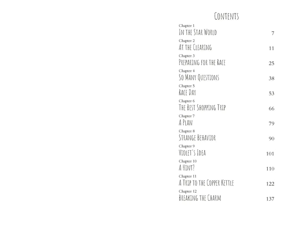 The town of Westport is sponsoring a charity run, and everyone participates. But after the run, Mia, Lexi, Sita, Violet, and the newest Star Friend, Maddie, notice that many of the adults in town are at first very energetic and spontaneous but then gradually become reckless. Maddie observes that her mom hasn't been affected, and she wonders why. And as the adults' actions intensify, the girls suspect dark magic. Where is it coming from? With black-and-white illustrations throughout.