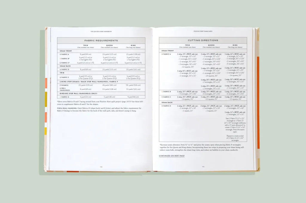 Perfect for beginners and experienced quilters alike, this quilting book features simple illustrations and easy-to-follow steps that teach you how to make 15+ beautiful quilt projects for around your home, including everything from placemats to a throw pillow to a matching bed quilt and pillow shams.