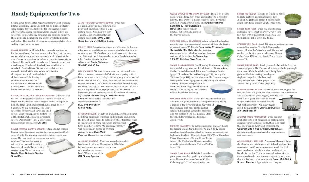 Updated buying guide Recommendations for test kitchen–tested smaller size pans and handy equipment for cooking for two