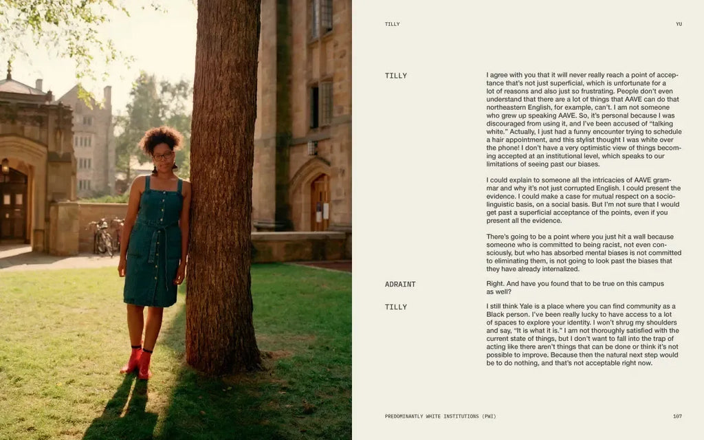 Now Bereal expands the scope of his original project and visits colleges nationwide, from Historically Black Colleges and Universities (HBCUs) to predominantly white institutions to trade schools and more. Rather than dwelling on the monolith of trauma often associated with Black narratives, Bereal is dedicated to using honest dialogue to share stories of true joy and triumph amidst the hardships, prejudices, and internal struggles. Using an exciting and eclectic design approach to accompany the portraits and stories, each individual profile effectively conveys the interviewee's unique voice, tone, and background.