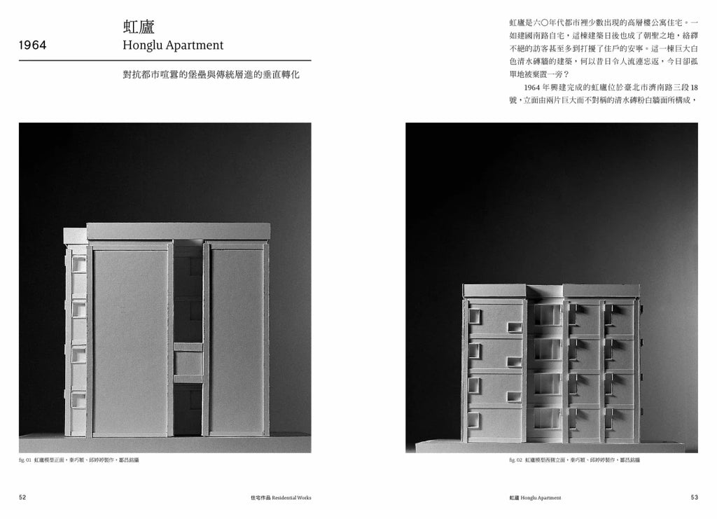 1953年,三十六歲的王大閎成立大洪建築師事務所,開始了他在臺灣土地上「中國建築現代化」的實驗探索,他的「現代化」並非單純挪用中國建築元素,而是融合傳統建築的精神,開創全新的風貌。在首件設計案「建國南路自宅」,他以一個簡單的長方形平面,打造出內部空間自由流暢的住宅,這件作品嘗試結合中國的建築語彙和密斯的風格語法,為當時國內建築界帶來極大衝擊,並為尋求創新中國建築的年輕一輩指出方向。