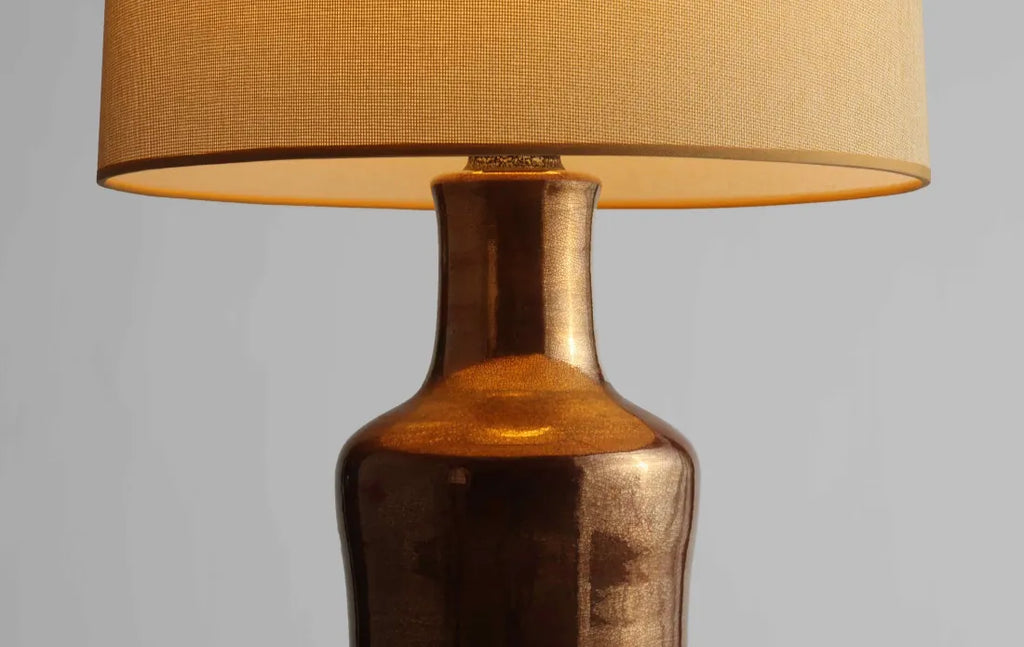 -家具材質能乘載不同時空的情感記憶與日常習慣,也高度展現跨文化混融的特質。像是冰裂紋花瓶茶几燈、花瓶章魚腳立燈,王大閎將現成的古董中式陶瓷花瓶,拼組凹折鐵件支腳、亞麻布燈罩和大片貝殼板,呈現他如何將東方美學注入包浩斯精神。