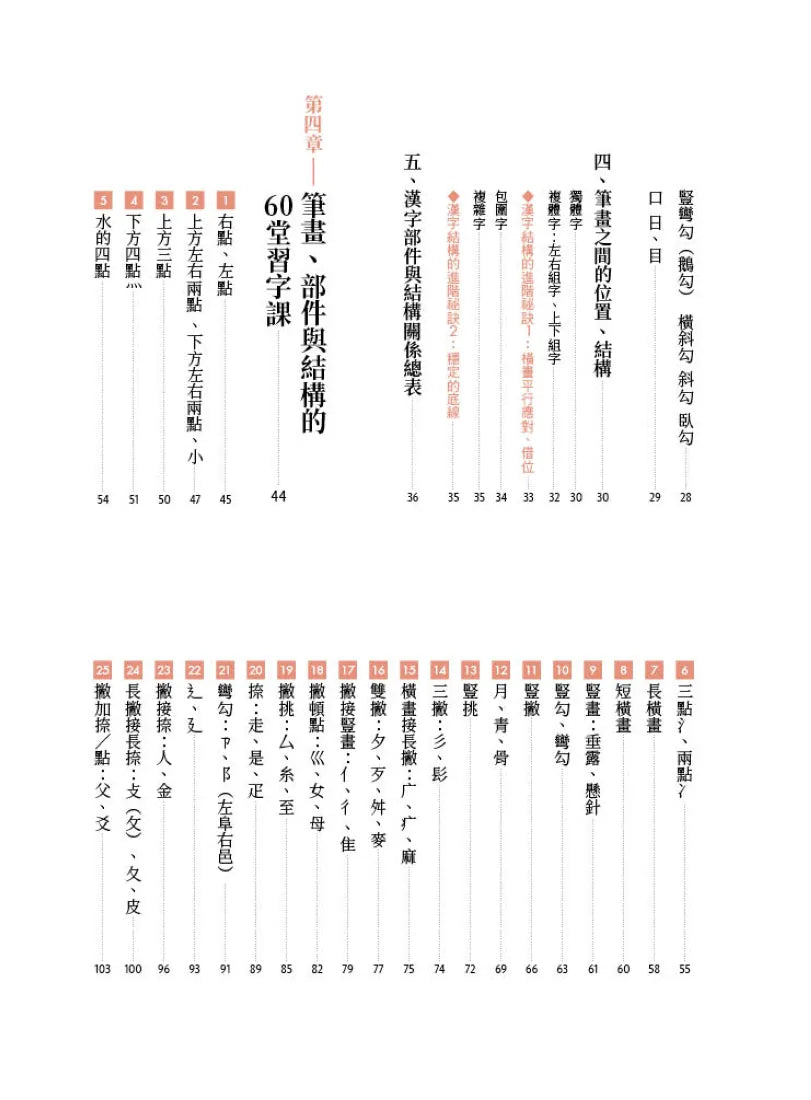 ▶ 學會「3大筆畫法則+5大結構原理」,從此知道字為何漂亮、哪裡歪掉。