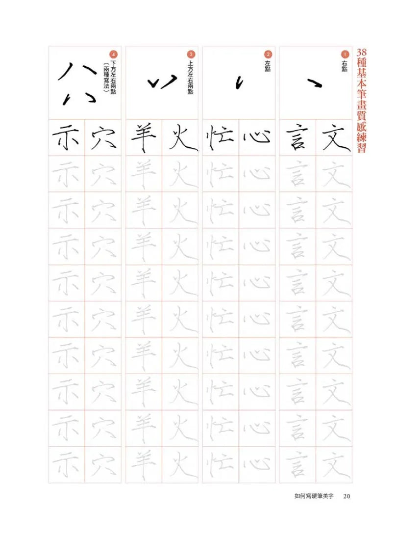 ▶ 細膩質感+38種基本筆畫+200種部件與結構關係,養成書寫美字肌肉記憶。