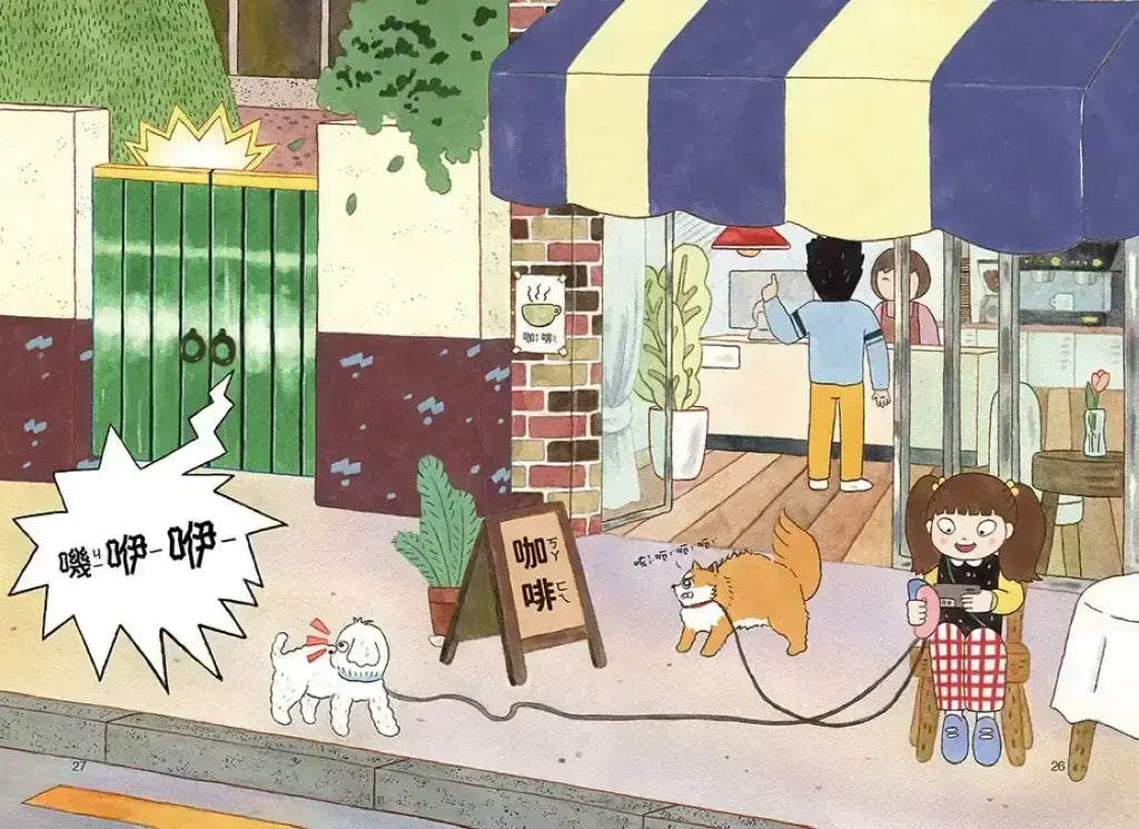 書中兩隻狗狗的動作、神情與個性刻畫生動鮮明,畫面充滿活力、表情豐富,可愛得令人一看就愛上。