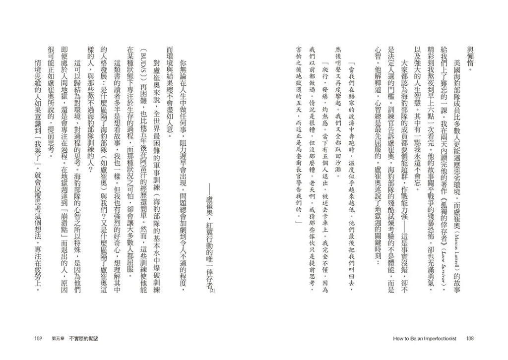 「討論到了非常多現代人的痛苦誘因:拖延、不自信、怕出錯、在意他人看法、沾沾自喜於完美主義等。文筆非常幽默,擅長比喻和舉例,閱讀過程非常暢快。」