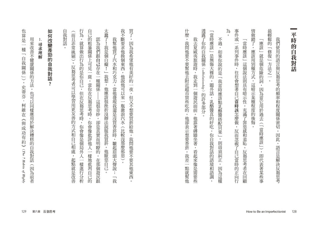 要對付有害的慣性思考,光靠意志力不夠,必須找出盲點。本書提供容易依循、實證可行的技巧,打開這本書,跟著作者審視你的完美主義,找回你專屬的自由。
