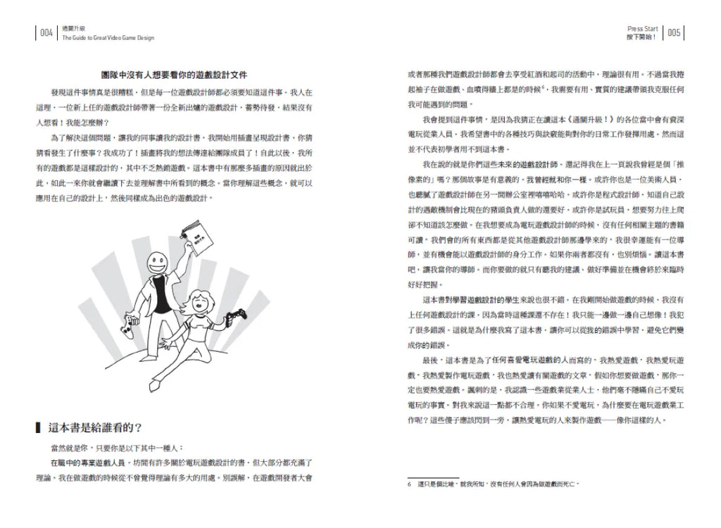 一切疑問,都可以在《通關升級!》中找到解答!這是一本手把手,從第一步開始教你認識關於遊戲設計各種面相的殿堂級「教科書」(雖然塞了很多笑話和漫畫)。