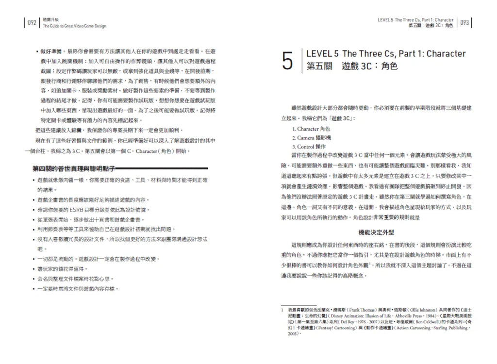 從遊戲的3C(角色塑造、鏡頭運作、操控方式)、關卡設計、HUD設計與介面,到充滿張力的衝突與戰鬥,本書還收錄了更多心法,包括如何用「玩家手指運動指南」設計符合人體工學的控制方法、如何用「墨西哥披薩」技法讓關卡主題變得獨一無二、如何用「攻擊矩陣」追蹤作戰招式與反應、如何規劃「有良心」的營利模式好讓玩家付費支持你營運下去,以及如何選對發行商才能讓遊戲擁有最多曝光……