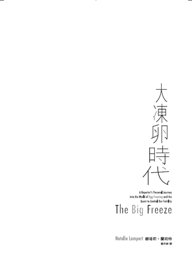「我只看了《大凍卵時代》一眼,就欲罷不能。這本書不只是引人入勝,更深入而親密地揭示了高科技生殖程序的世界,引導讀者全面思考這項足以改變人生的決定——冷凍卵子。這是一本既具可讀性又具有開創性的書。」——東妮.魏斯區勒(Toni Weschler),公共衛生碩士,全美備受尊崇的女性健康教育學者