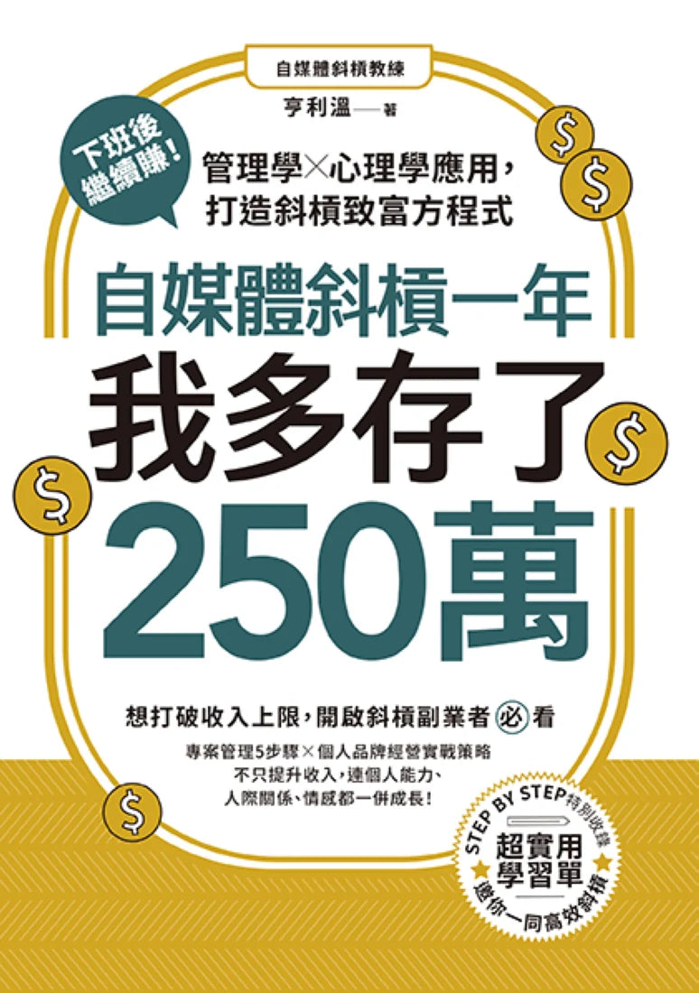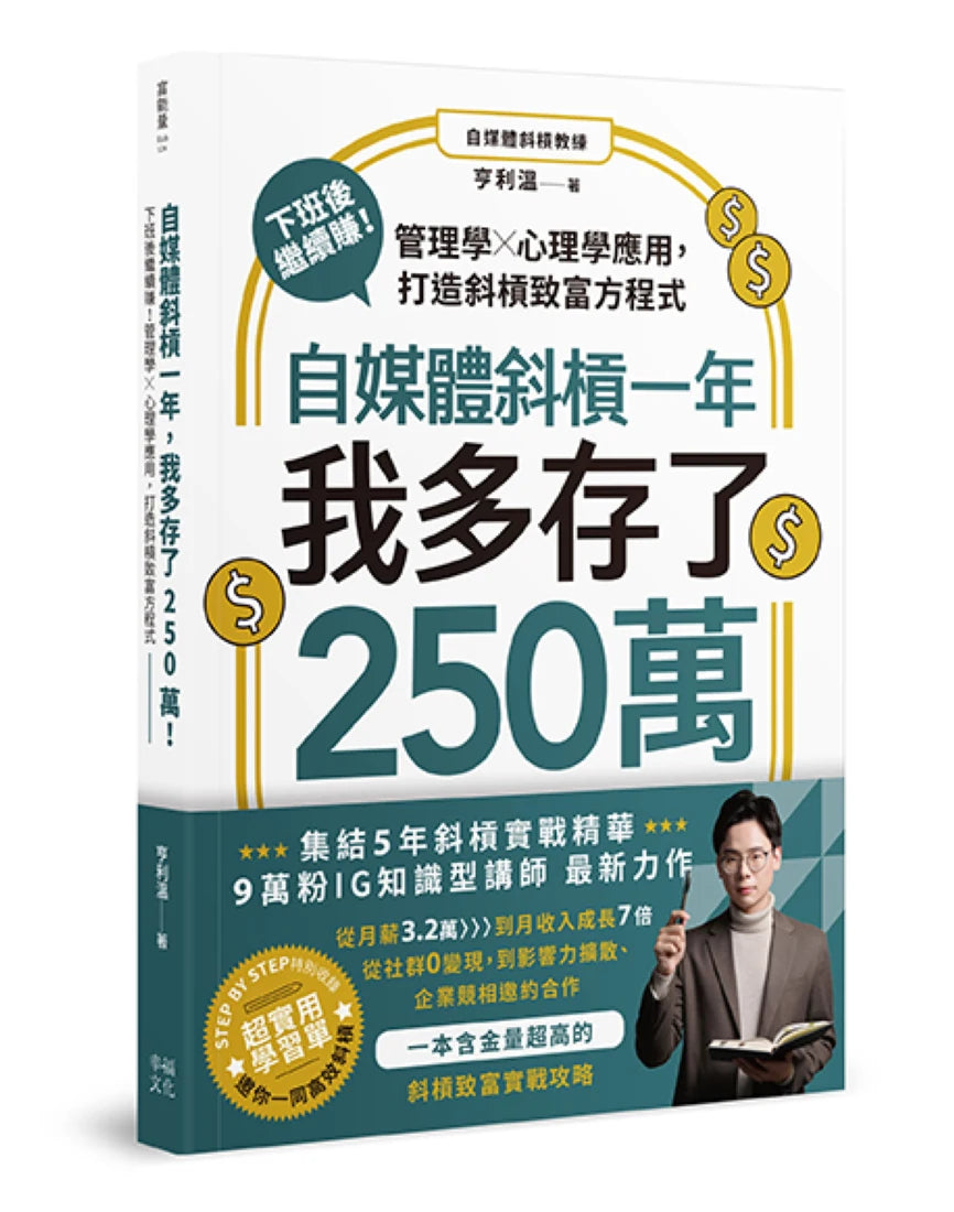 以IG貼文〈我29歲自律一整年,成功多存了250萬〉引發熱議,本書是亨利溫將5年來斜槓經營自媒體的心路歷程,化繁為簡精煉而成的超實戰攻略,教大家打通低風險、高成長性的致富之路。不僅收入,連個人能力、人際關係、感情上都能獲得成長。