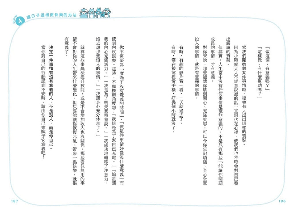 ▶ 只要能讓你感到開心、忘記煩惱、充滿笑容,就是有意義的事情。