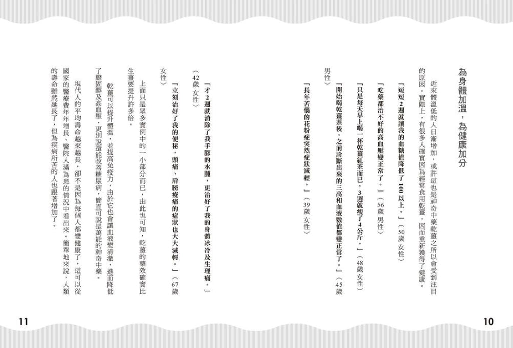 「開始喝乾薑茶後,之前診斷出來的三高和血液數値都變正常了。」(45歳男性)