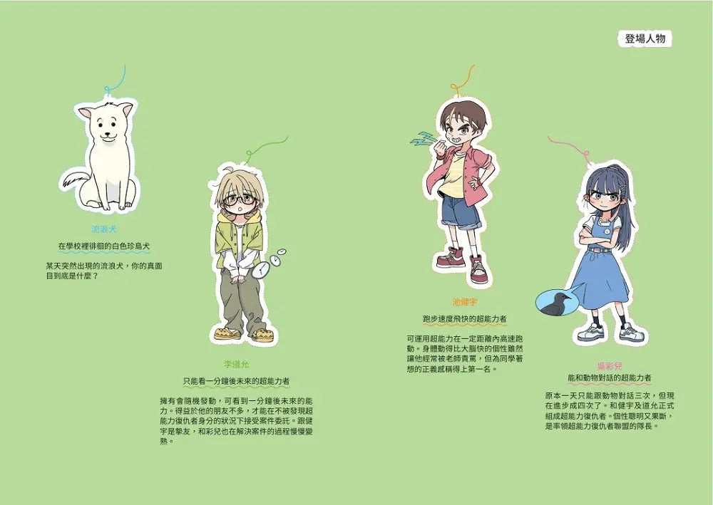 「再見。」健宇沒好氣地跟我道別後,轉身離開的我刻意隱藏失望,更有活力地邁出我的腳步,同時也期待著明天會有能讓我們超能力復仇者動起來的委託案出現。