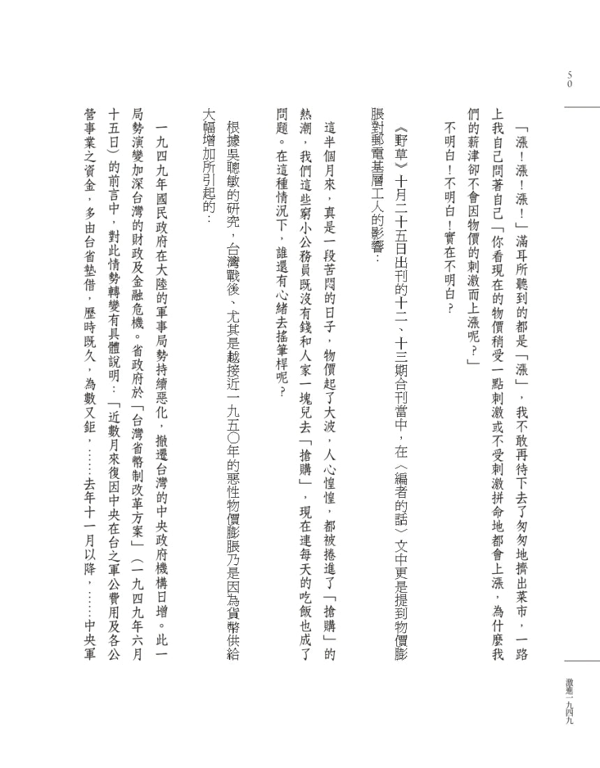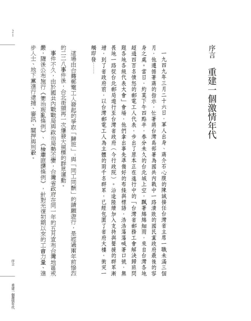 ★收錄郵電案受難者的第一手訪談證言,以及郵電工人編輯的刊物《野草》內容選讀,還原戰後台灣的政治經濟狀況,與廣大勞工追求民主和社會平等的心聲。
