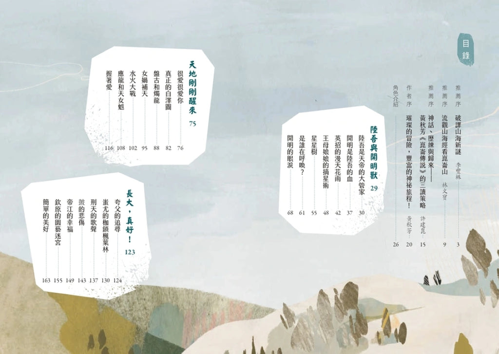 黃秋芳老師用感性動人的文筆,重新為兒少讀者架構了《山海經》的奇幻世界,將原本僅有隻字片語、艱澀難懂的神怪經典,轉變為充滿人性、有滋有味的神話故事;再配上Cinyee Chiu色彩浪漫繽紛的插畫,更增添了崑崙山變幻莫測、神祕有趣的氣氛。