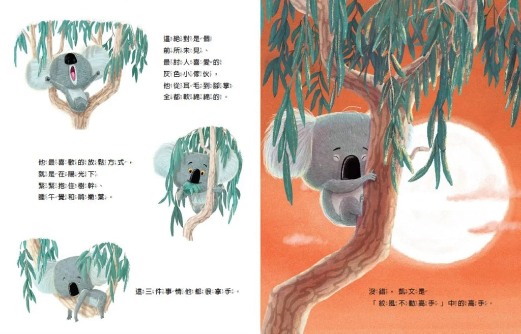 ★以宛如動畫短片般的分鏡與誇張搞笑的故事情節,生動表現無尾熊和袋熊、澳洲野犬、袋鼠等小動物互動的過程,讓孩子哈哈大笑,同時從輕鬆的故事當中學習建立自信,試著接受生活裡的小改變。