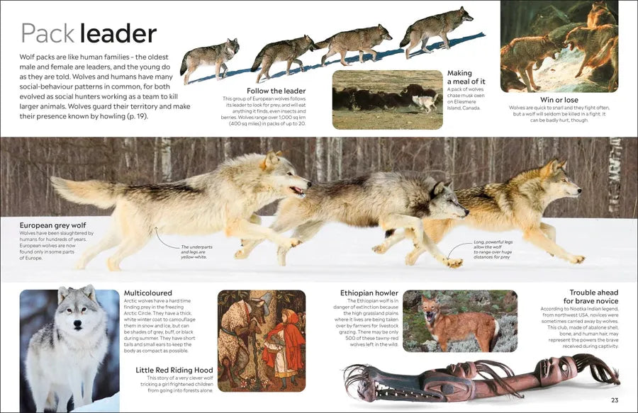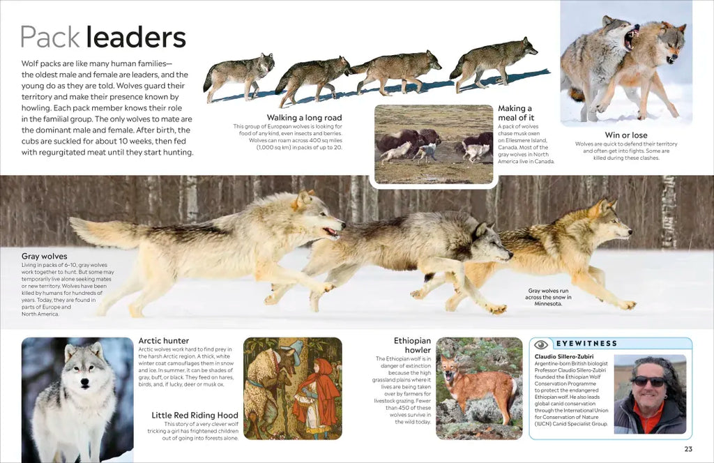 Eyewitness Dog introduces children to the evolutionary history of our furry friends - from their domestication, anatomy, and behavior, for both domestic and wild breeds, including wolves, jackals, and foxes. Learn why dogs and wolves hunt in packs, how dogs "talk" with their ears and tails, the basics of looking after a pet dog, and how dogs were specially taught to help humans.