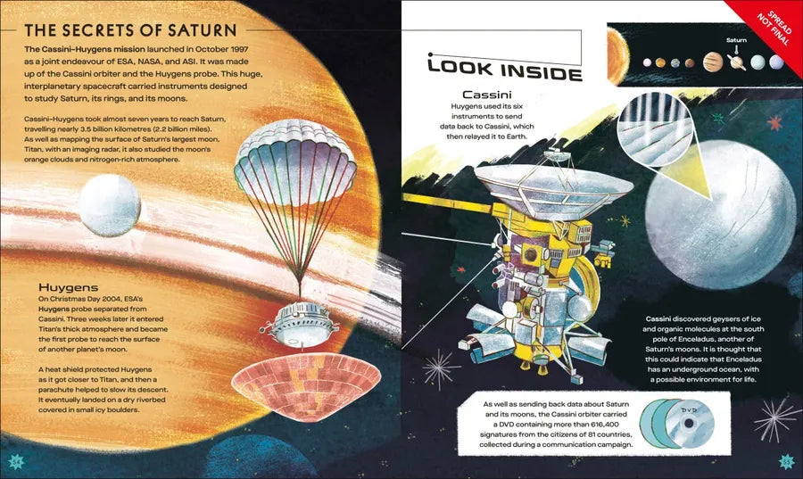 - Discover real spacecraft from the world’s space agencies, including satellites, telescopes, space stations, probes and more, with their inner workings laid bare to delight curious young minds