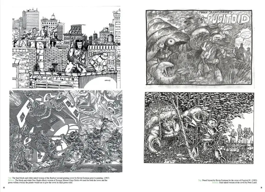 See how it all began, from raw pencil layouts to fully finished covers and paintings, all accompanied by exclusive commentary from co-creator Kevin Eastman. Explore the creative evolution that turned four mutant brothers into a global phenomenon!