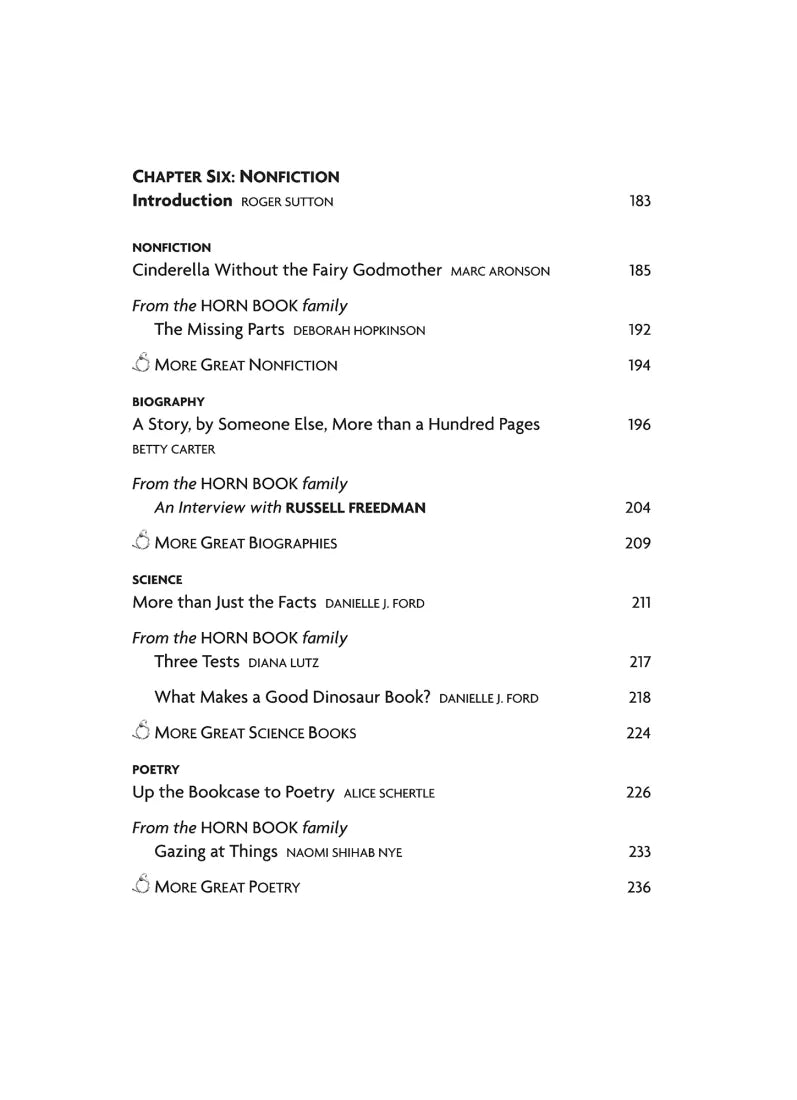 Roger Sutton knows how and why children read. He must, as the editor in chief of The Horn Book, which since 1924 has been America’s best source for reviews of books for young readers. But for many parents, selecting books for their children can make them feel lost. In this essential resource, Roger Sutton and Martha V. Parravano, executive editor at the magazine, offer thoughtful essays that consider how books are read to (and then by) young people. They invite such leading authors and artists as Maurice Sendak, Katherine Paterson, Margaret Mahy, and Jon Scieszka, as well as a selection of top critics, to add their voices about the genres they know best. The result is an indispensable readers’ companion to everything from wordless board books to the most complex and daring young adult novels.