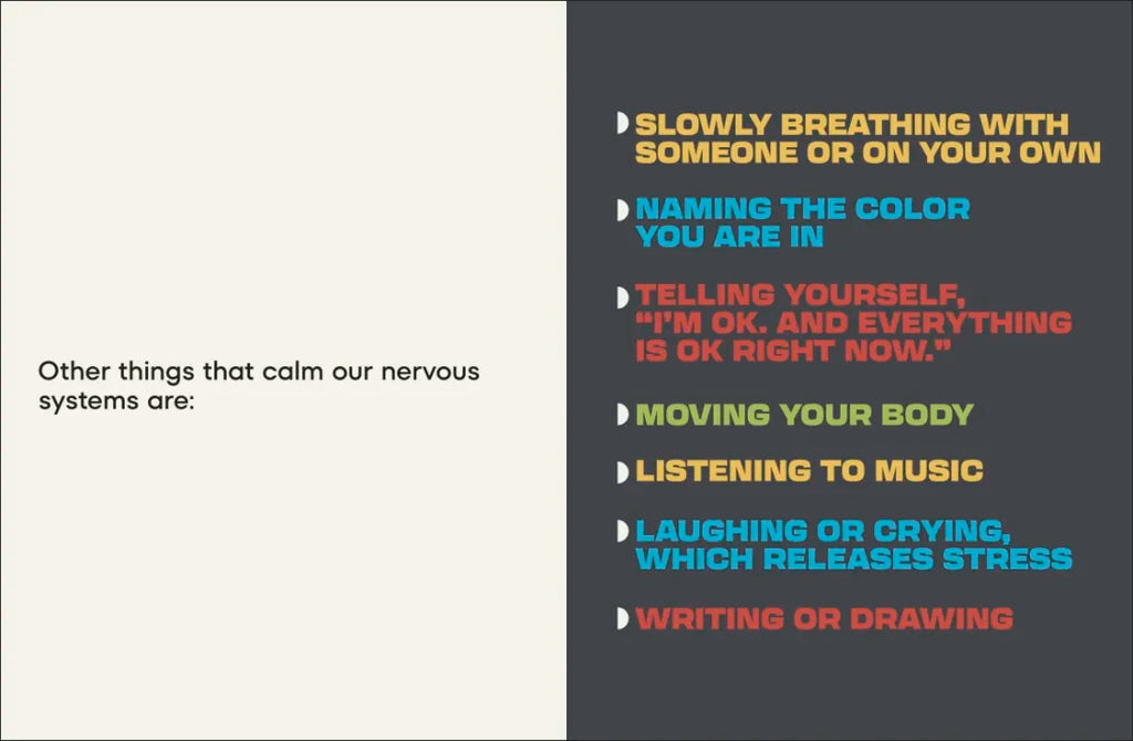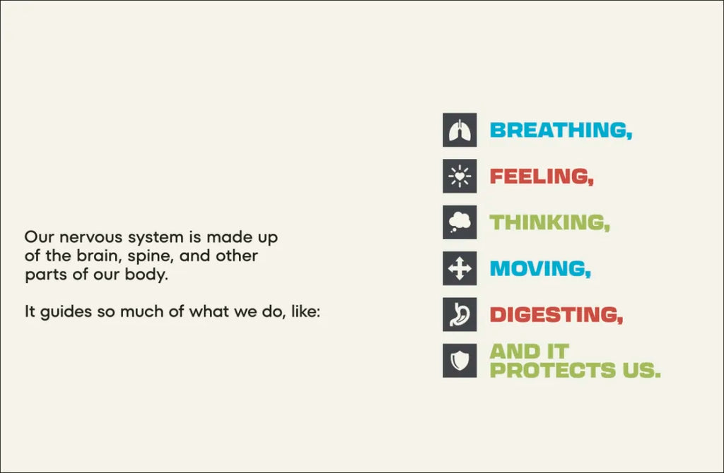 This is a kids’ book about nervous system regulation. The nervous system guides so much of what we do, from breathing and feeling to thinking and living! But our nervous systems can get dysregulated, which can make us feel disconnected or overwhelmed.