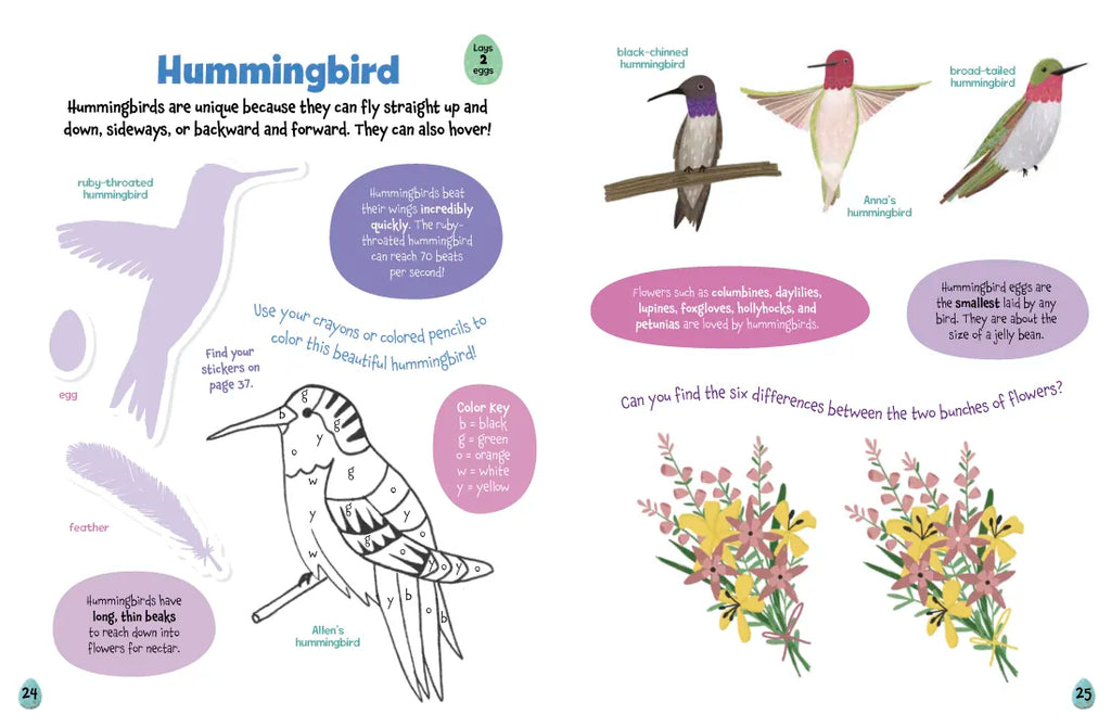 Young readers will learn all about the cardinal, owl, mockingbird, eagle, finch, duck, and many more common North American birds as they complete the activities in this engaging book, which includes fun facts and 100 stickers.
