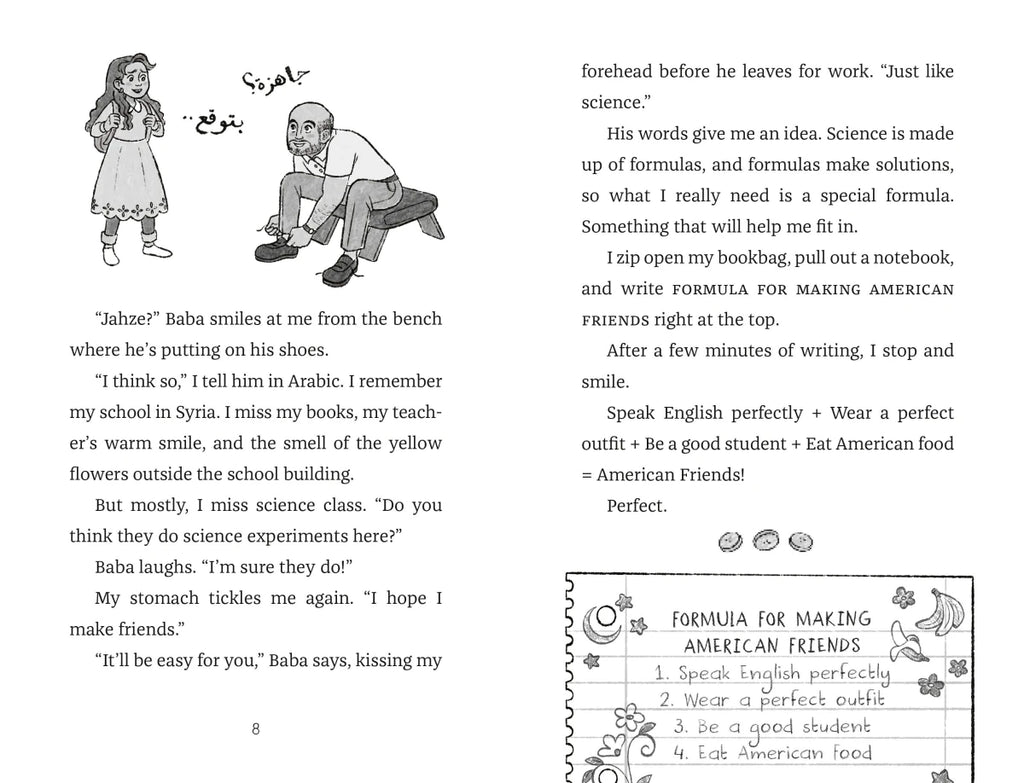 Amina loves bananas, science, and all things yellow! Her family recently arrived from Syria to Indiana, and she's starting at a brand-new school in a brand-new country. She’s excited but also nervous, especially about making friends! But she develops the perfect formula to get everything just right: