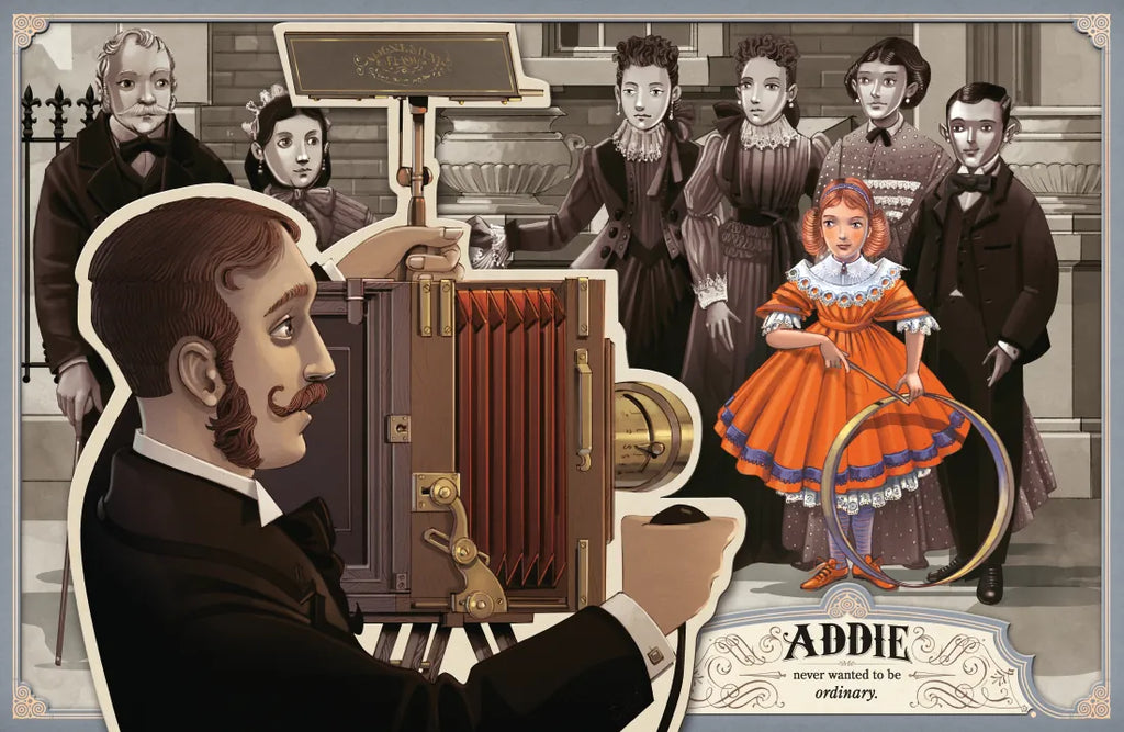 Some girls are perfectly happy never doing anything out of the ordinary. But Addie was anything but ordinary. She longed for thrills and excitement! At a time when a young lady appearing onstage was considered most unusual, Addie defied convention and became a dancer. And when she married the world-famous magician Herrmann the Great, she knew she had to be part of his show. Addie wanted to shock and dazzle! She would do anything to draw the crowds, even agree to be shot out of a cannon. But when Herrmann the Great died, Addie couldn’t disappoint her loyal fans — the show had to go on. What could she do? She would perform the show all by herself! From the creators of Mesmerized, this rollicking romp tells the true story of one fearless magician’s rise to glory, featuring exquisitely lavish illustrations by Iacopo Bruno. Extensive back matter, including instructions for performing one of Addie’s original tricks, makes this a dazzling celebration of one of the first female conjurers in show business.