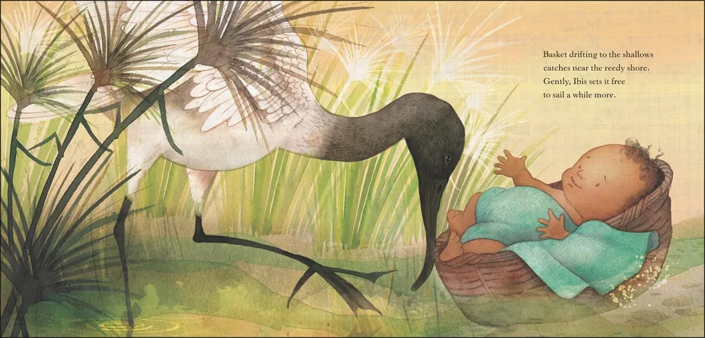 In the time of the pharaohs, a loving mother saves her son by tucking him into a basket and setting him afloat on the wide, wild Nile River. Over one long night, the creatures of the Nile—Curious Ibis, Mama Hippo, Mighty Crocodile—watch over Moses, nudge him on his way, and keep him safe through catching reeds and a raging storm. As morning breaks, the river delivers the baby safe and sound into an unexpected safe haven—the welcoming arms of the pharaoh’s daughter. With a poetic text and sumptuous watercolors, Caryn Yacowitz and Julie Downing introduce the youngest readers to Moses and the Exodus story and weave a warm, reassuring tale of love and comfort. Ideal for Passover and year-round, this universal story invites little ones of any faith to experience a thrilling journey in perfect, protected safety.