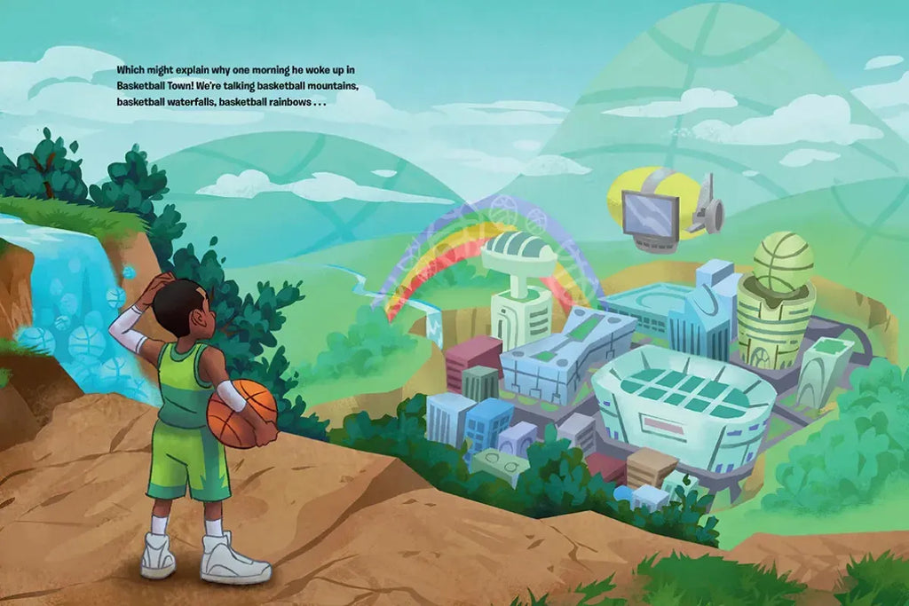 In an unabashed wish-fulfillment tale for the ultimate basketball fan, a kid wakes up in a fantasy town where everyone plays basketball all day long.