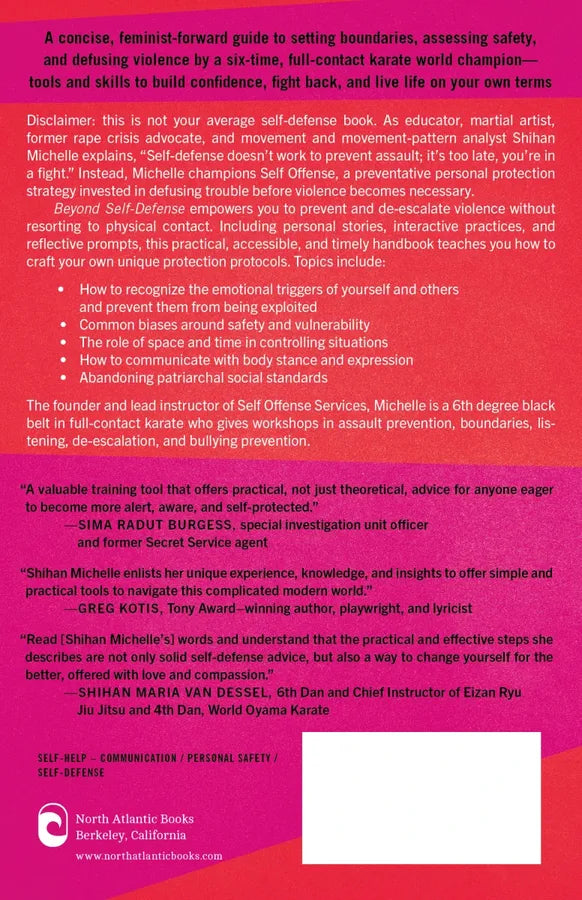 Disclaimer: this is not your average self-defense book. As educator, martial artist, movement analyst, somatic therapist, and rape crisis advocate Shihan Michelle explains, “Self-defense doesn’t work to prevent assault; it’s too late, you’re in a fight.” Instead, Michelle champions self-offense, a preventative personal protection strategy invested in defusing trouble before violence becomes necessary.