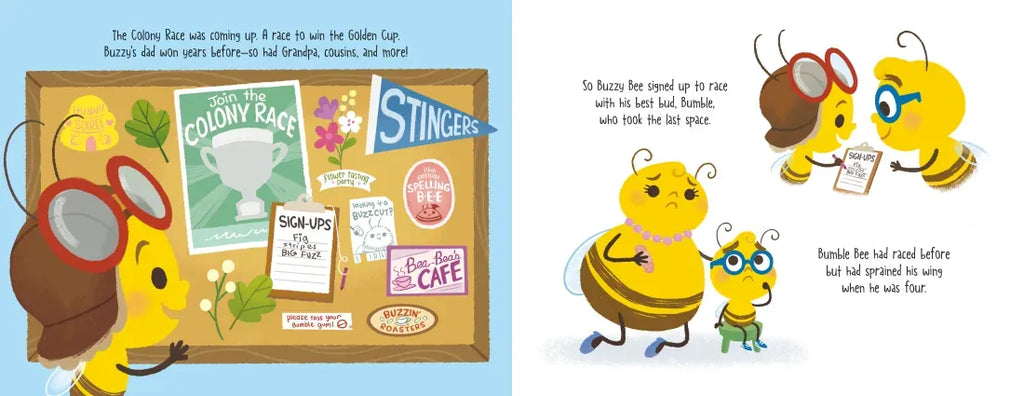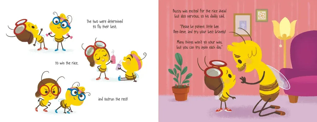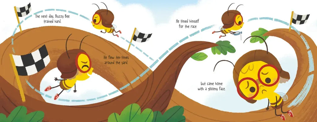 Buzzy Bee is excited to participate in the Colony's upcoming race. There's just one problem: he isn't very fast! But Buzzy is not a quitter, so he practices tirelessly to get better and better. But on the day of the race, things don't exactly go as expected. Can Buzzy save the day and win the race?